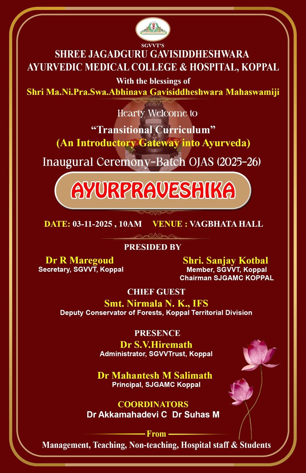S.G.V.V. TRUST’S SHREE JAGADGURU GAVISIDDHESHWAR AYURVEDIC MEDICAL COLLEGE & HOSPITAL ,POST-GRADUATE STUDIES RESEARCH CENTRE , KOPPAL.